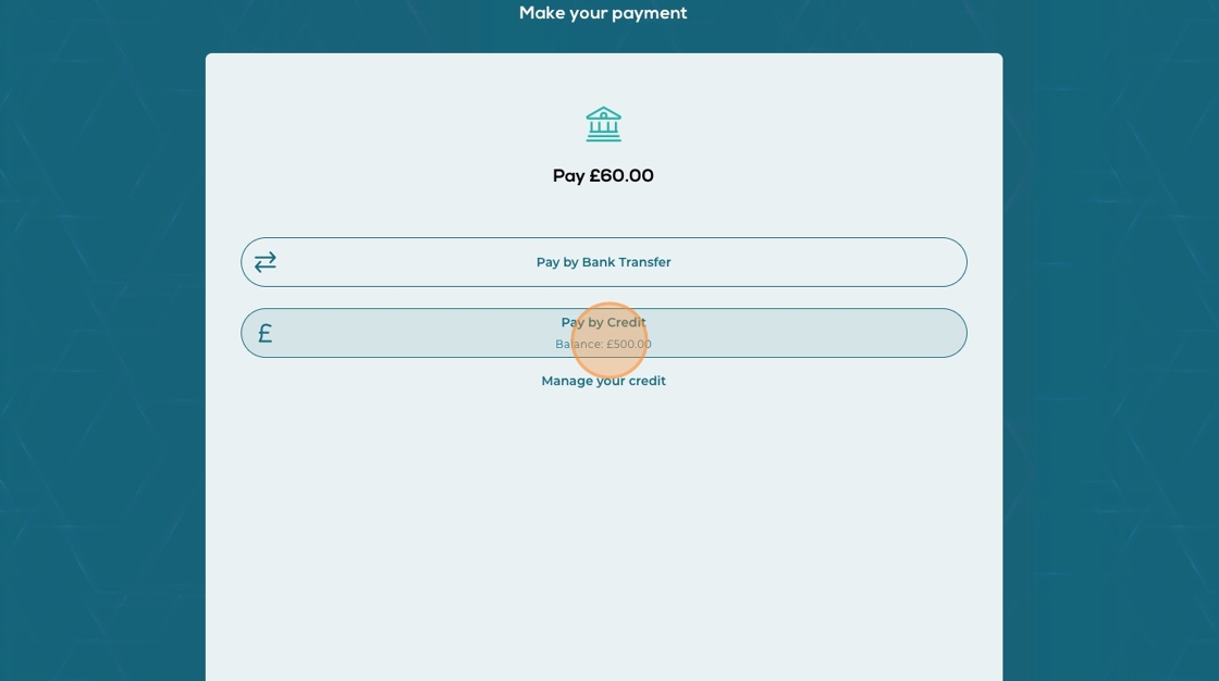 - If you chose to pay by Credit, this will be taken directly from your YesRef Credit