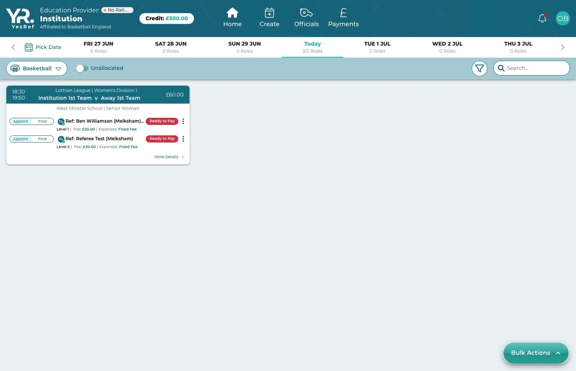 - Click an individual game or Click "Bulk Actions" to pay multiple roles at once