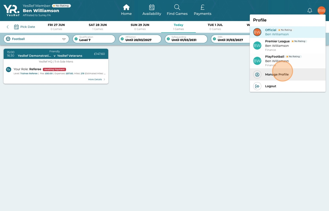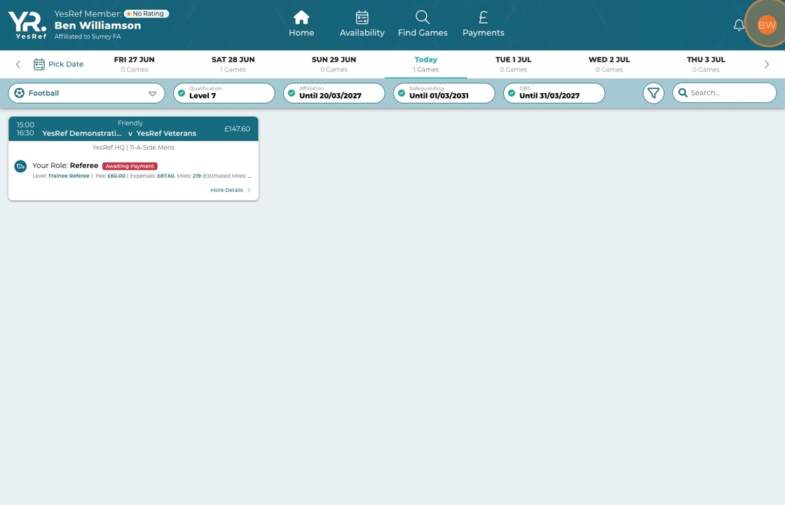 - Click the initials in the top right-hand corner or if you are using the app, click profile in the bottom right-hand corner