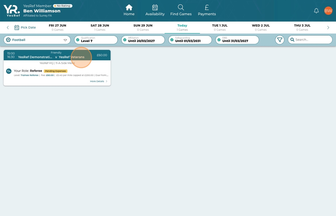 - Click the game that shows the yellow status of Awaiting Expenses