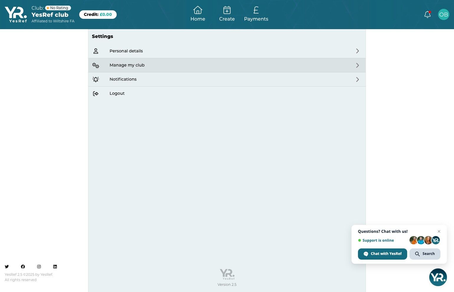 - Click "Manage my Club"
